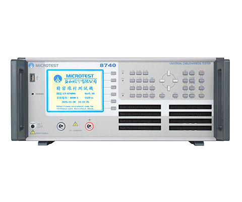 MICROTEST新推出的8740专业线材测试仪器系列,有128/256及512三种不同测试点。有别于以往传统型线材测试仪器,8740专业线材测试仪器内部采用双处理单元,透过DSP处理器进行模拟信号取样测量,加快运算处理速度,从原理更新来摆脱过去使用RMS转DC组件积分器量测方法、花费的时间。并加入400MHZ ARM 9处理器设计人机接口操作,显示画面刷新速度提升300%,也提供完整的RS232 通讯,能将测试结果回传到个人计算机端储存; 内建的记忆空间能储存超过200组测试档案。支持 RS232、USB 和 Printer 等接口。可应用在各种线材、连接器、及连接器与线材结合的成品测试,满足各式线材多点位的测试需求。